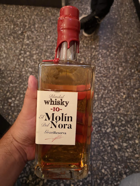 Y el primer whisky asturiano. Molín de Nora. Todavía es relativamente joven porque es la primera tirada que sale, con 10 años. Suave, entra solo.